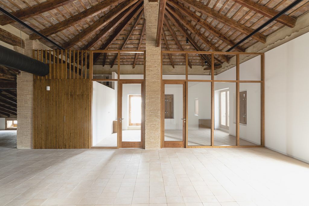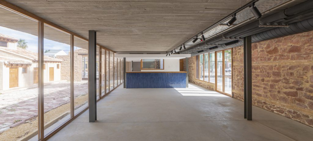 A través de pequeñas actuaciones arqueológicas y catas, se recuperan los principales espacios con su materialidad original de pavimentos de piedra de rodeno, o las cubiertas de madera de la Nau dels bous. El nuevo edificio se integra en el jardín con una cubierta verde, desapareciendo en el conjunto, tras el muro de rodeno del Pati dels Bous o como un frente transparente de carpinterías de madera desde el jardín de Tenyidors.