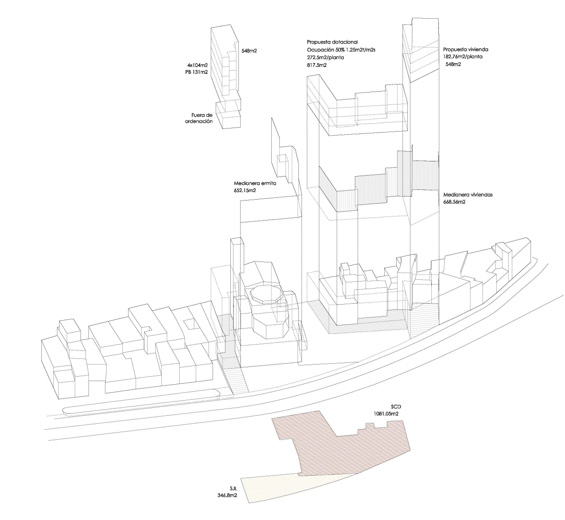 -Patrimonio e identidad. Recuperar las trazas urbanas, recuperando la fachada del Hospital, la huella del Jardin de palmeras o las estructuras de la Nave, con intervenciones sutiles con estructuras metálicas que permitan leer los niveles históricos anteriores.