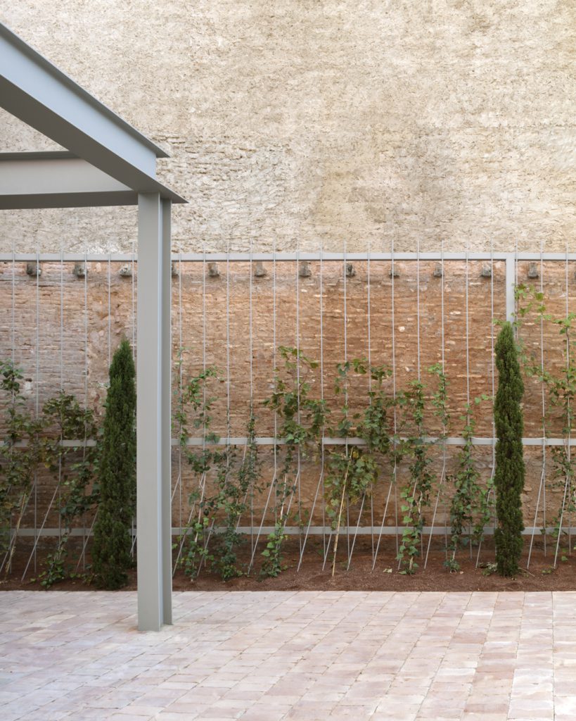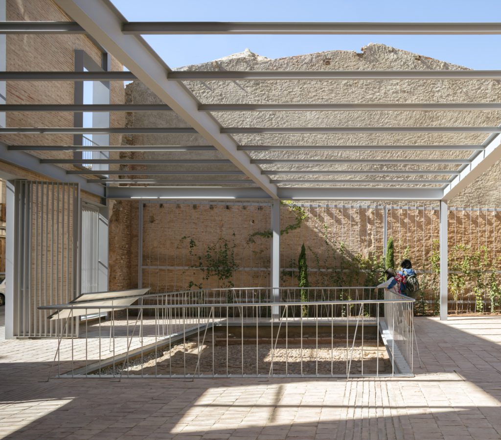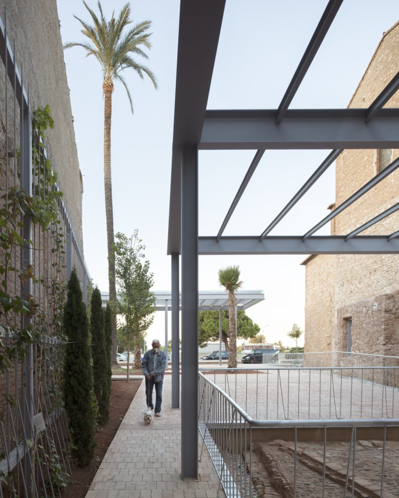 El espacio vacío durante años, se convirtió en un gran aparcamiento, siendo un riesgo para los muros de la Ermita y dejando una serie de medianeras abiertas con un gran impacto visual. El proyecto pretende devolver el entorno patrimonial, por lo que resulta necesario recuperar este espacio para la ciudadanía. El espacio es un jardín que recupera los elementos principales de la identidad del hospital como la fachada y el jardín, y pone en valor las huellas arqueológicas que allí aparecieron durante los estudios previos, para que expliquen la historia y el pasado del lugar.