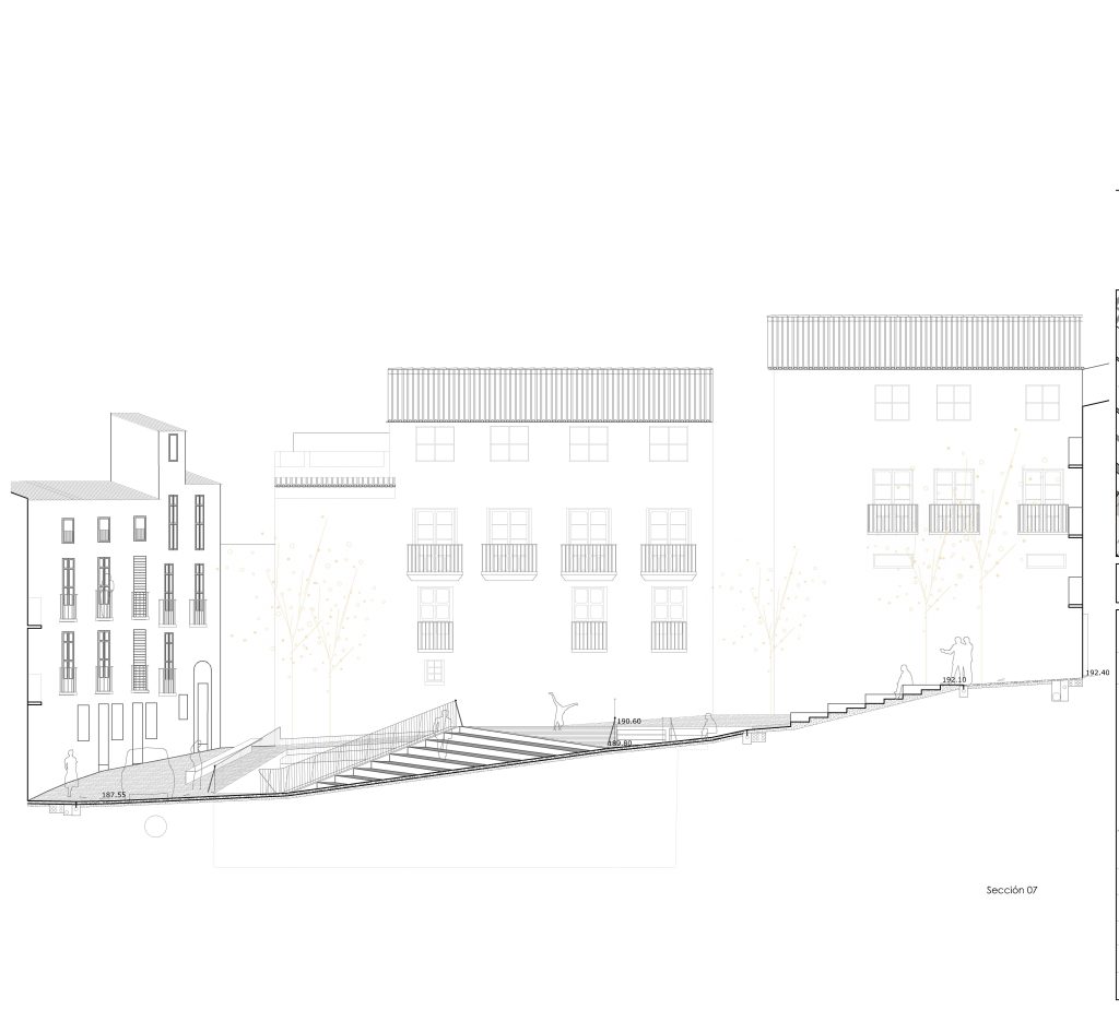 La premisa inicial del proyecto fue dual al tener que realizar un proyecto de regeneración urbana, tratándolo con una perspectiva inclusiva para mejorar la calidad de vida de gente del barrio, y poner en valor los hallazgos arqueológicos de época andalusí (S.X-XII) y época cristiana (S.XIII-XV). El proyecto se centra además en reconectar los diferentes niveles del espacio urbano incluyendo un pavimento continuo de piedra adaptando el sistema de pavimentación tradicional local. Las conexiones con las calles se resuelven con rampas suaves y con peldaños reducidos para facilitar los desplazamientos diarios de los peatones.